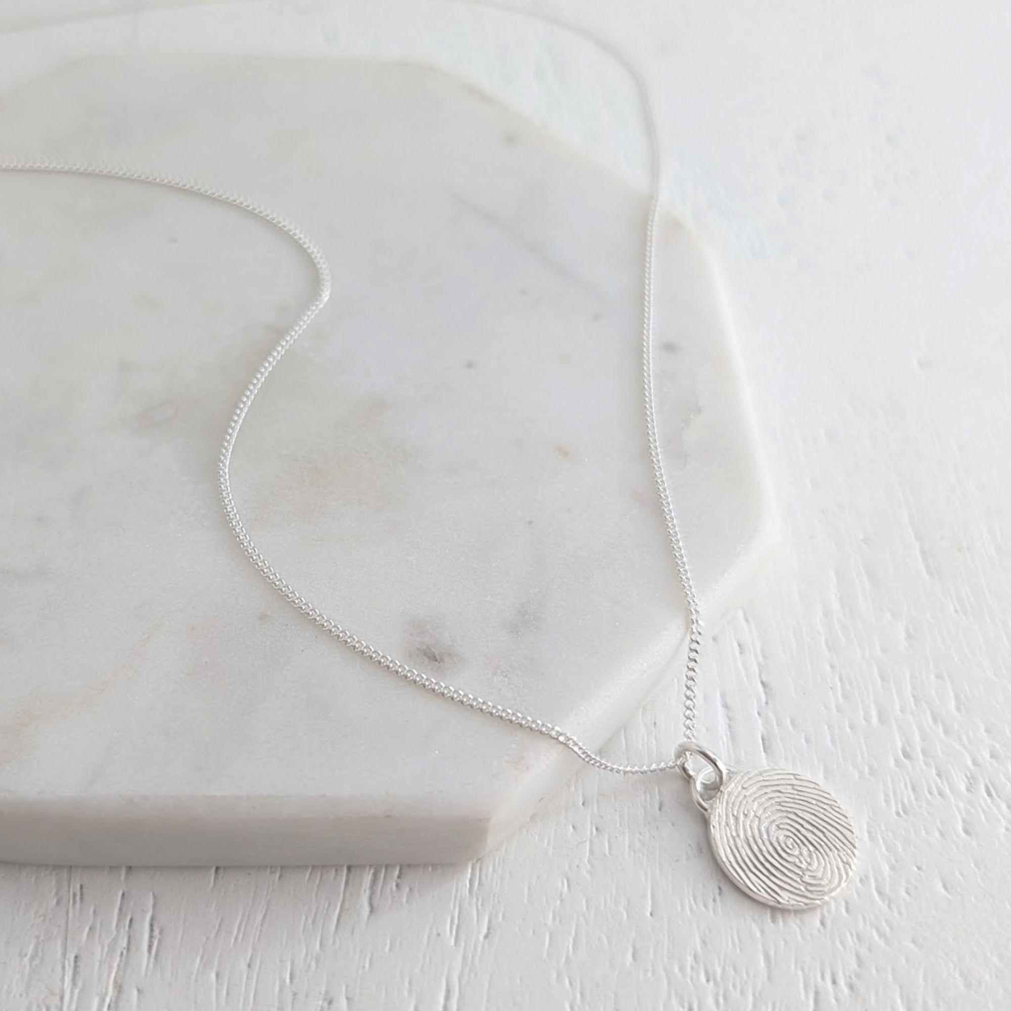 Handcrafted in our Shropshire studio from your choice of sterling silver or solid gold, the Dainty Disc Fingerprint Charm is a beautifully understated way to carry someone special with you. Thoughtfully designed to be small, light, and easy to wear every day, it offers the sentiment of fine jewellery at an afforable price.