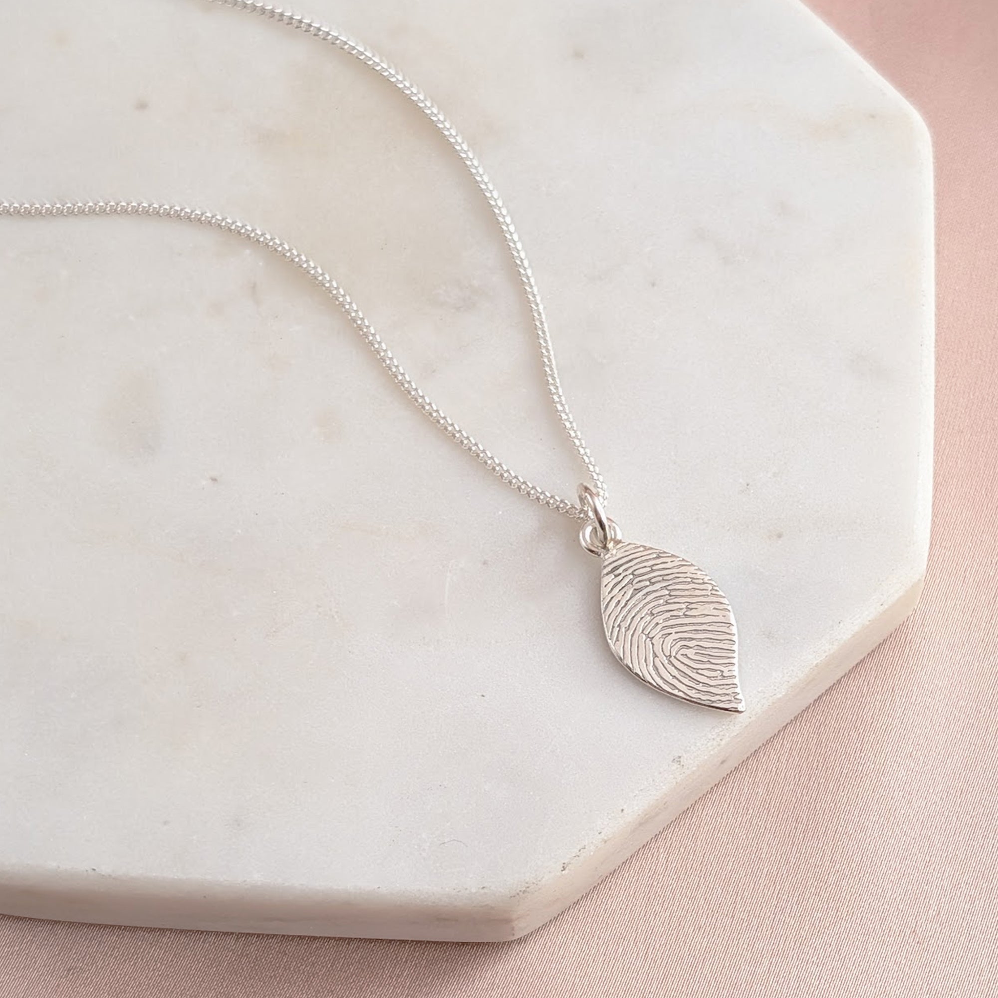 Handcrafted in Shropshire, the Leaf Fingerprint Charm is a delicate and meaningful piece of personalised jewellery, available in sterling silver or solid gold. Inspired by nature, this lightweight fingerprint charm is perfectly sized for everyday wear, offering a subtle yet sentimental way to keep a loved one close. Timeless, elegant, and thoughtfully designed to be treasured for years to come.