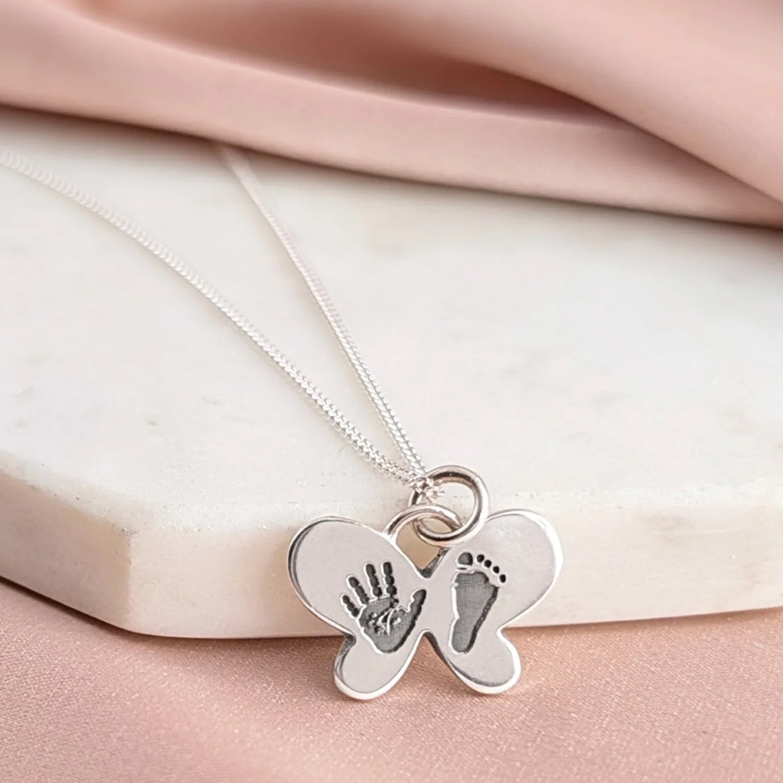 Handprint and footprint jewellery offers a unique way to capture a moment that passes all too quickly. Whether you are searching for a keepsake to celebrate a new arrival, or searching for a memorial piece, we recognise the emotional significance of this jewellery.